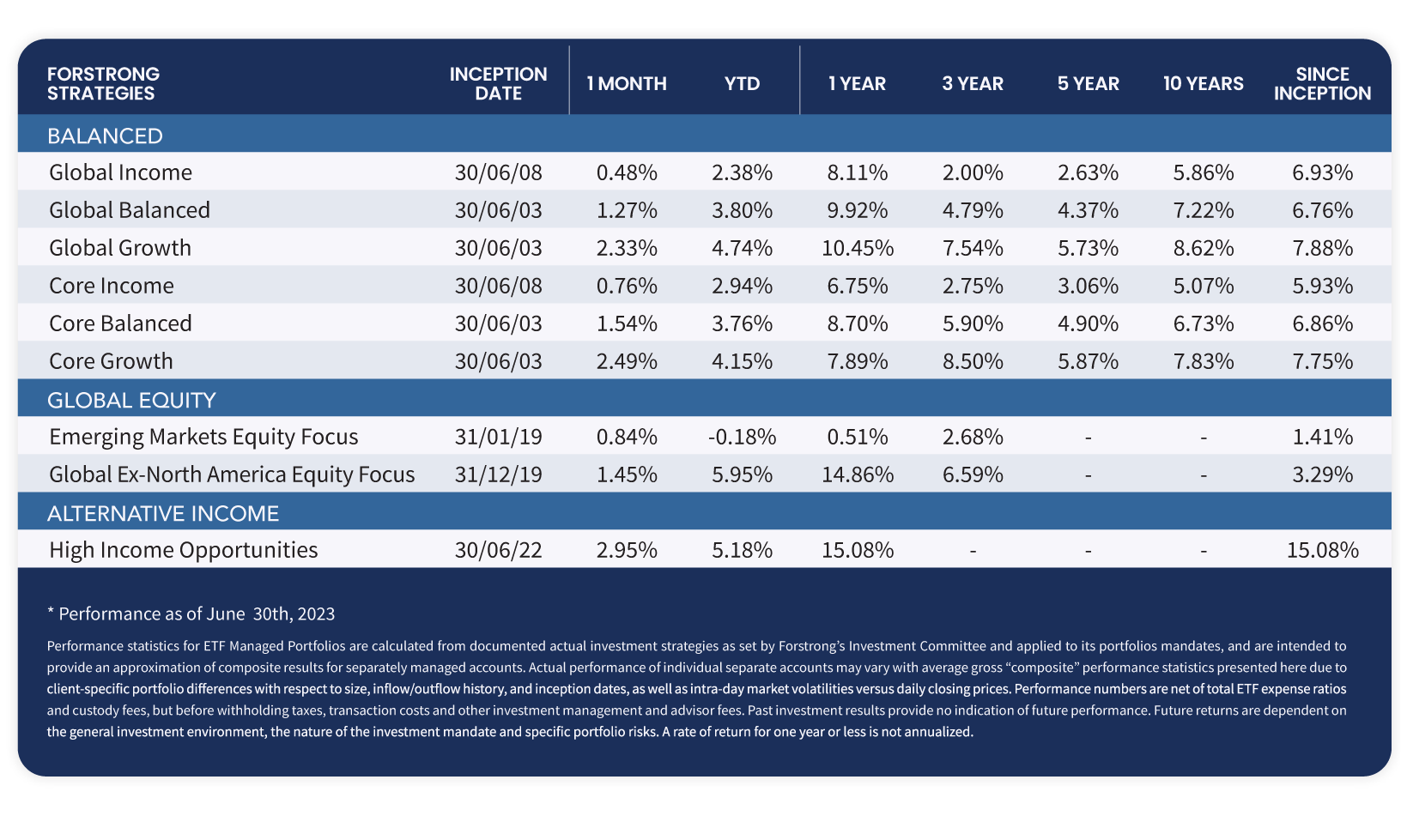 Staying short duration remains a key tenet of our fixed income strategy. However, with central banks at or near the end of their tightening cycles, a rotation from floating rate to fixed rate is warranted. Overweight floating rate exposure in Canada and the US has been replaced with short-term corporate bond exposure this quarter.